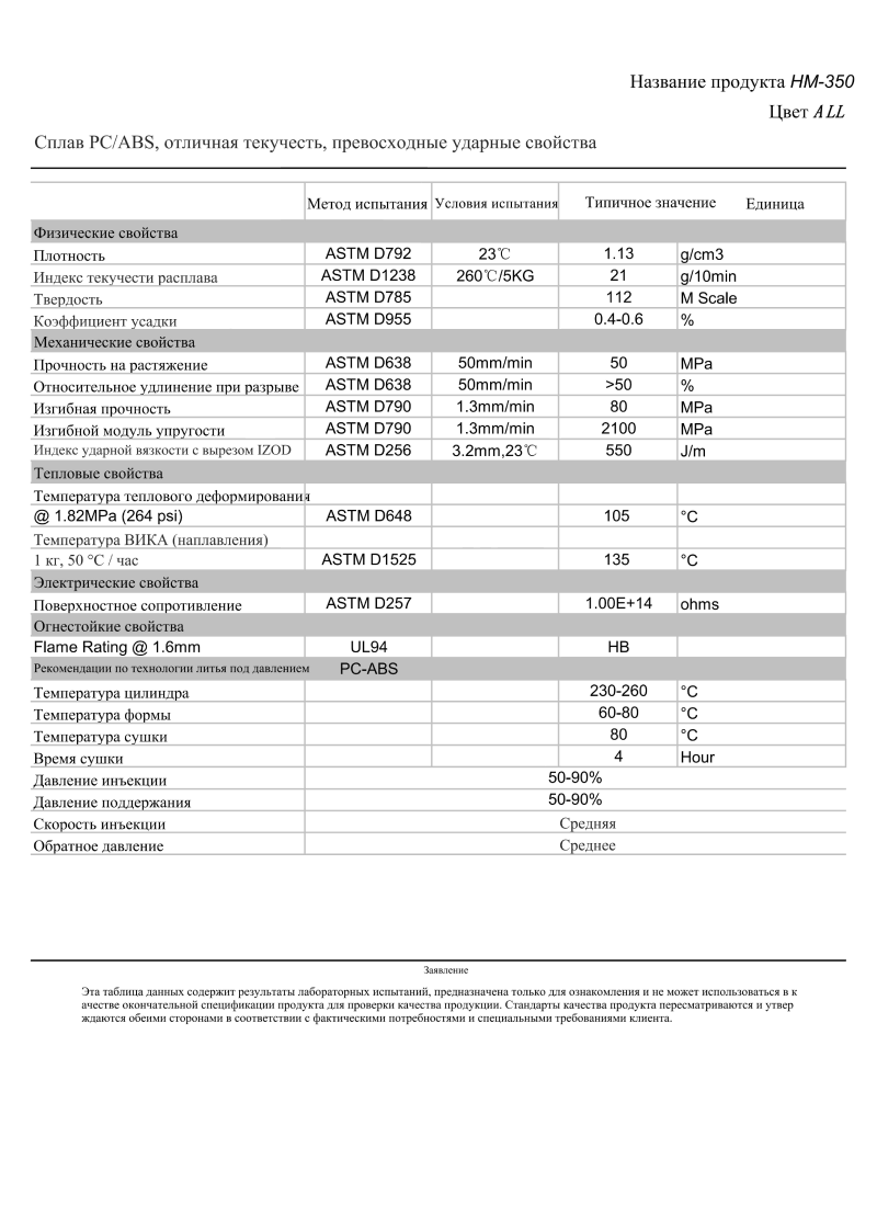 Материал менее хрупкий, чем чистый ПК, и при этом экономически эффективен, что обеспечивает широкое применение в автомобильных деталях, корпусах оборудования и потребительских изделиях.
